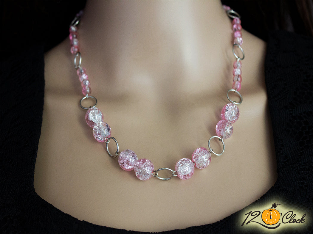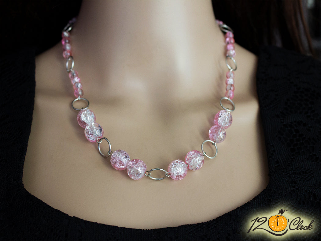 Метално колие със стъклени мъниста 12 мм и 4 мм и големи сребристи халки