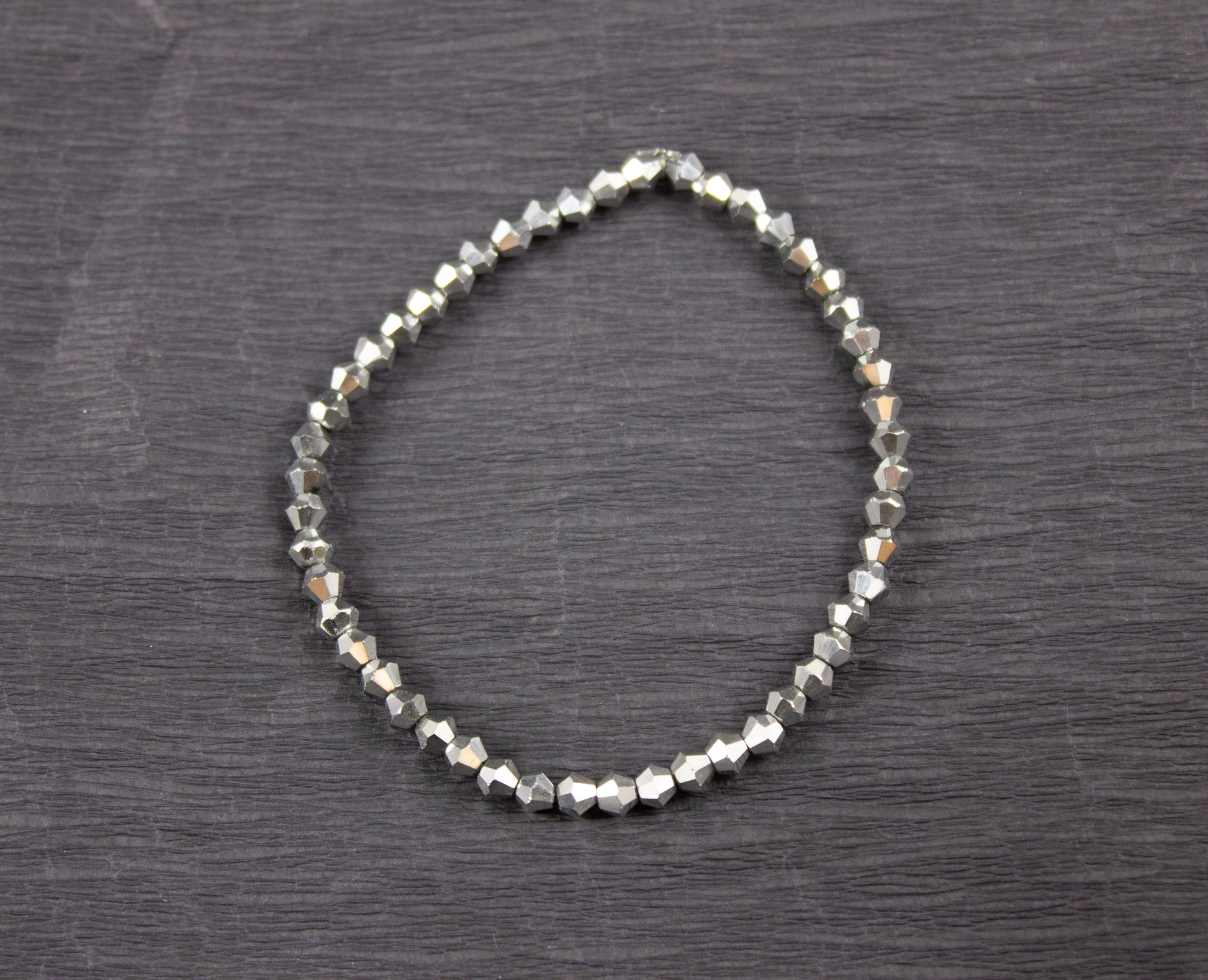 Ръчно изработена гривна от еластична корда и стъклени кристали 4 мм.
