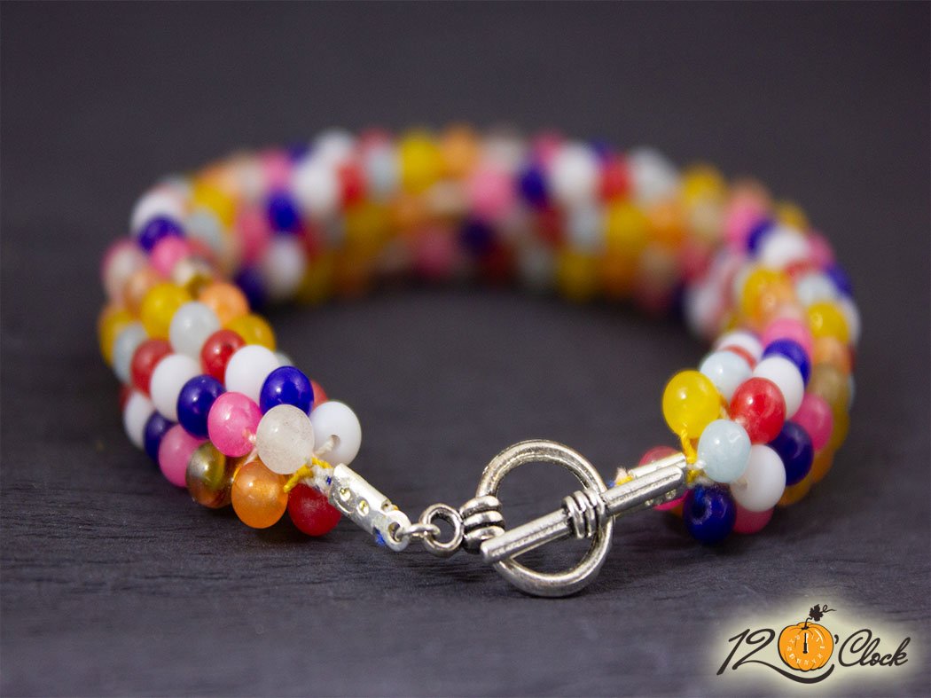 Кръгла плетеница "Разноцветни ахати, розов и турмалинов кварц"