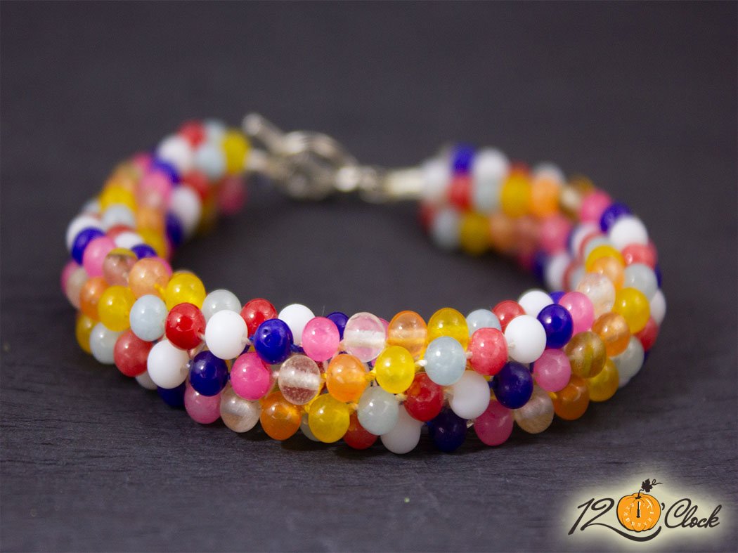 Ръчно изработена гривна от малки мъниста разноцветни ахати, розов и турмалинов кварц. Гривната е със сребриста закопчалка