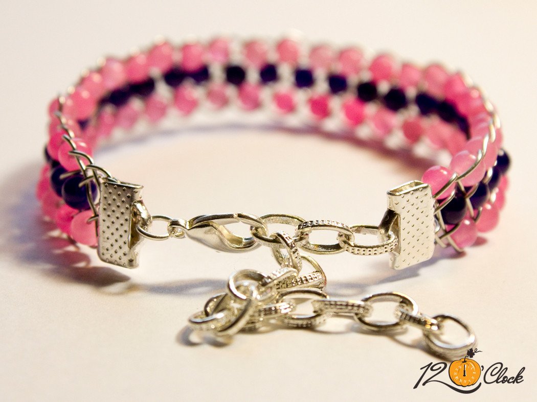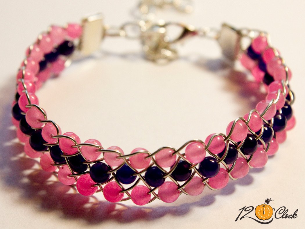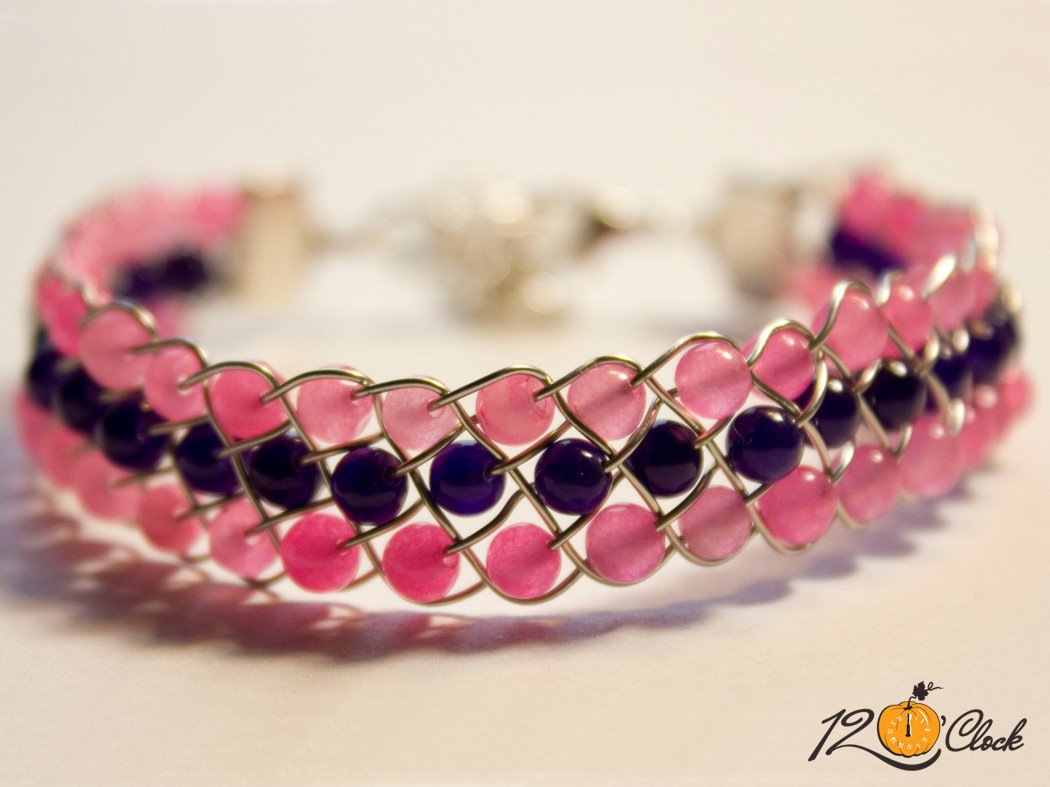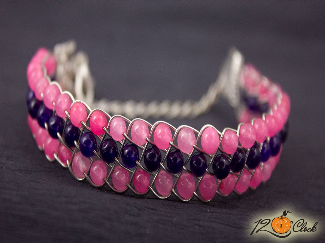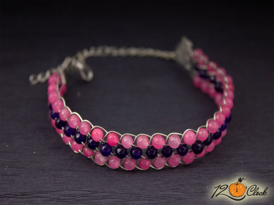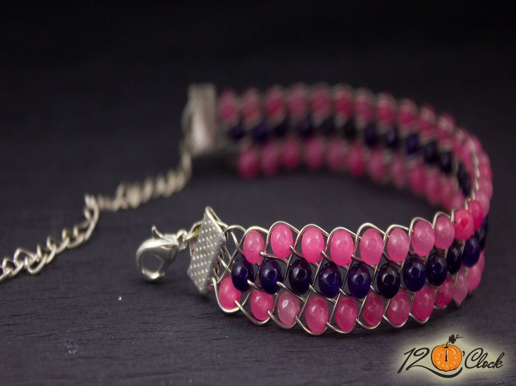 Ръчно изработена гривна от бижутерска тел и комбинация между розов кварц и лилав ахат