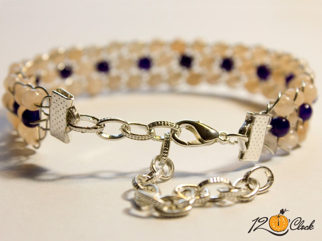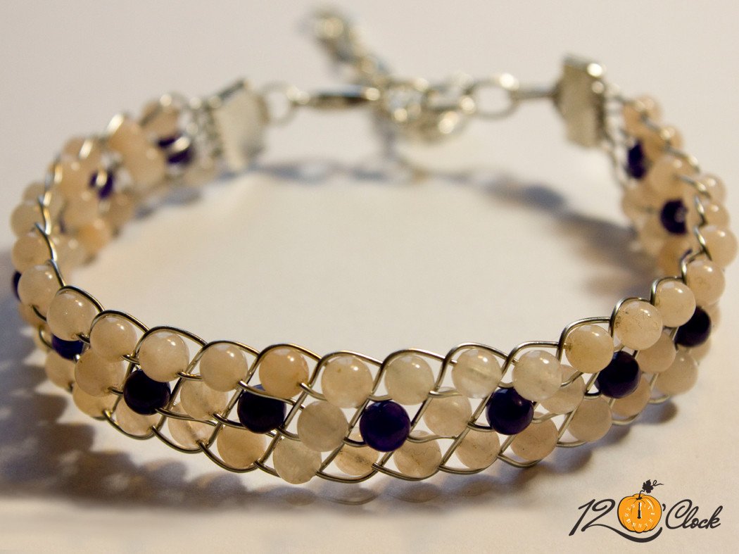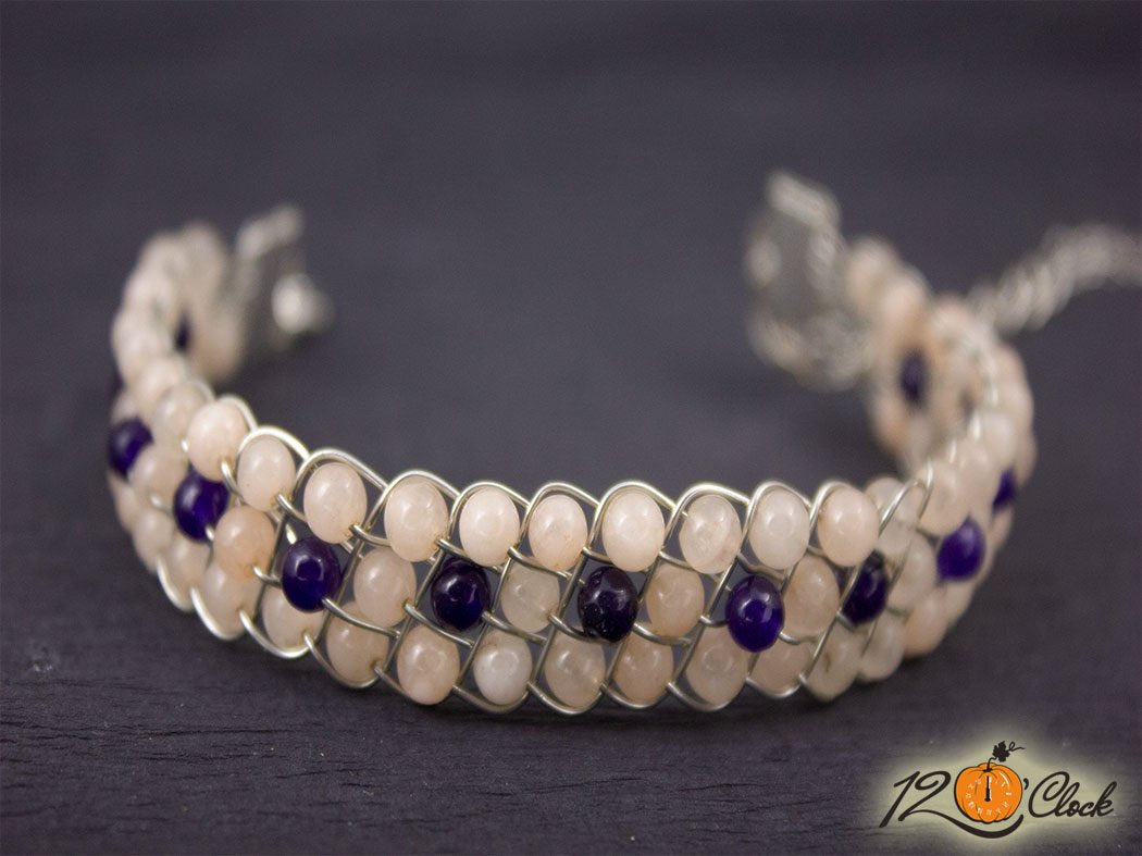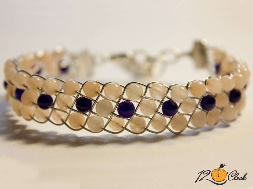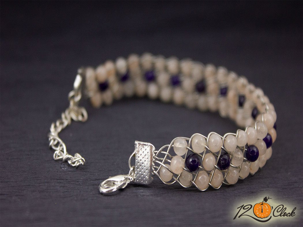 Ръчно изработена гривна от бижутерска тел и комбинация между кварц и лилав ахат