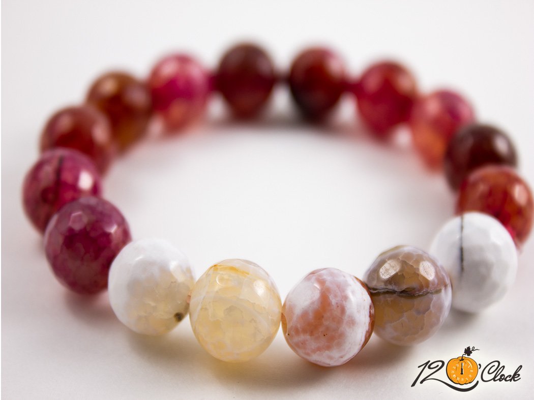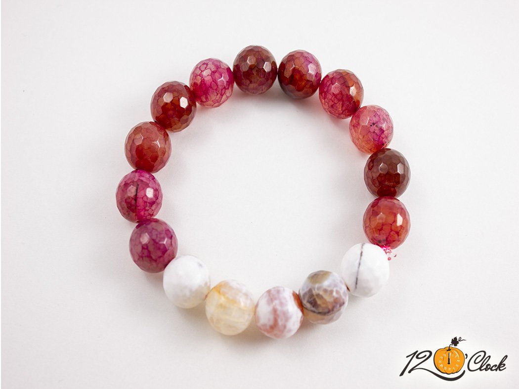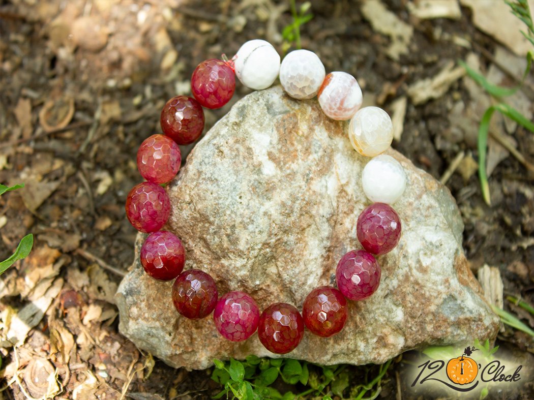 Ръчно изработена гривна от еластична корда, в комбинация от тъмно червен фасетиран драконов ахат 12 мм и бяло сив фасетиран ахат 12 мм.
